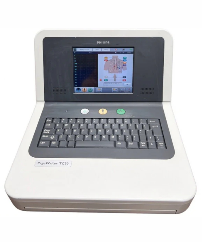 With the PageWriter TC30 cardiograph, each button lights in sequence, prompting you to take an ECG as easily as 1-2-3. The large, 10″ touchscreen further streamlines ECGs.